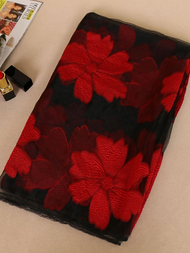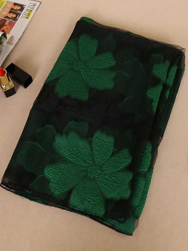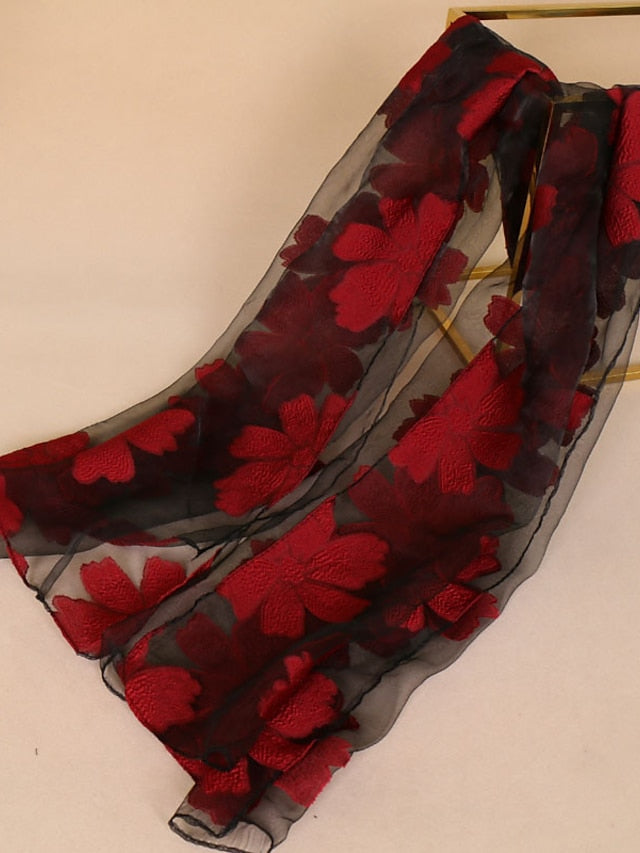Women's Chiffon Scarf Party Red Scarf Floral Elegant & Luxurious Wedding Casual Green Fall Winter