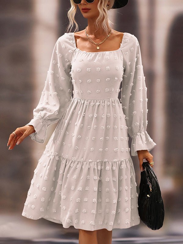 Jacquard Square Neck Long Sleeve Chiffon Dress