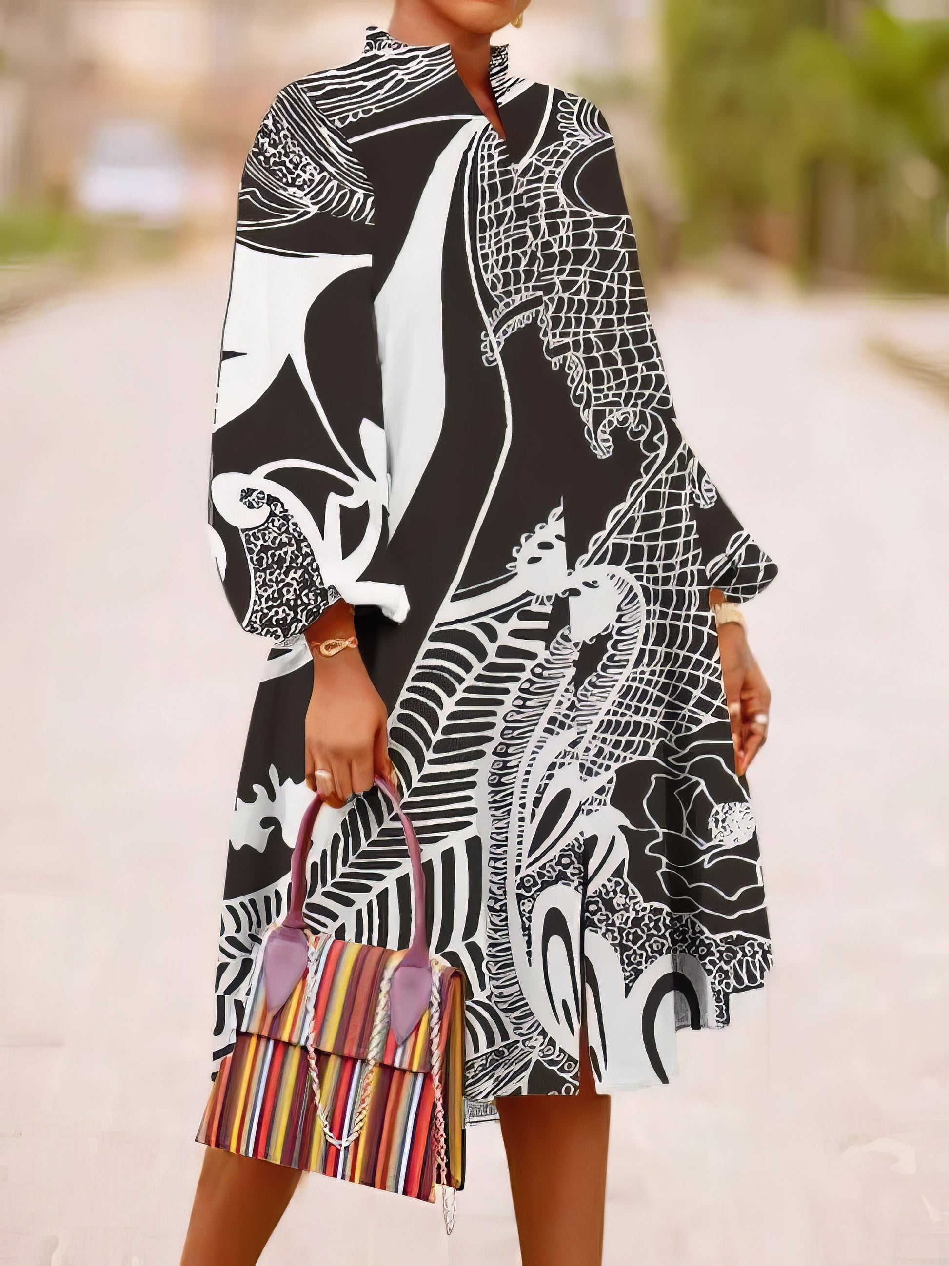 Upgrade your wardrobe with this stunning Loose Multicolor Printed Long Sleeve Dress. Enjoy the perfect blend of comfort and style, whether you're heading out for a casual day or a special occasion. Don't miss out on the opportunity to elevate your fashion game with this fabulous dress. And with free shipping on orders over $100, there's no better time to add it to your collection. Note: Sizes run a little small, so we recommend sizing up for the perfect fit.