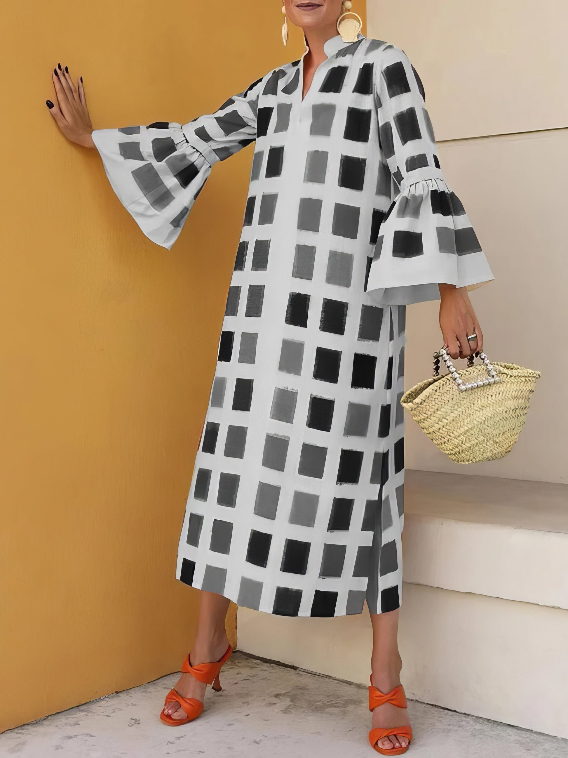 - Feature: Multicolor Plaid, Flared, Long Sleeve