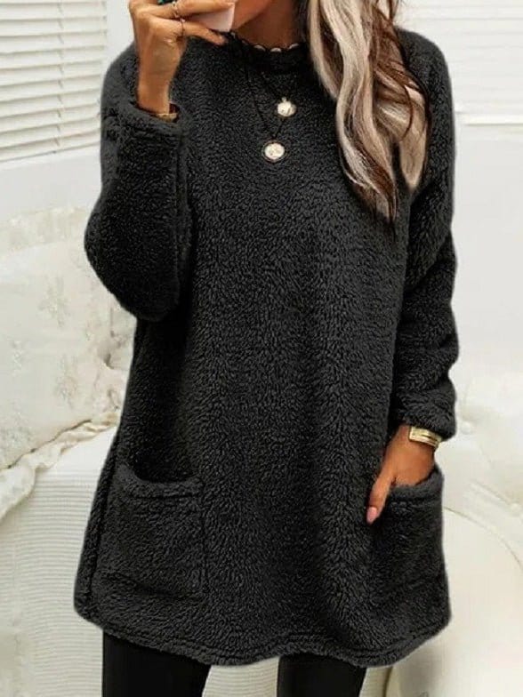Plush Crew Neck Pocket Long Sleeve T-Shirt Dress