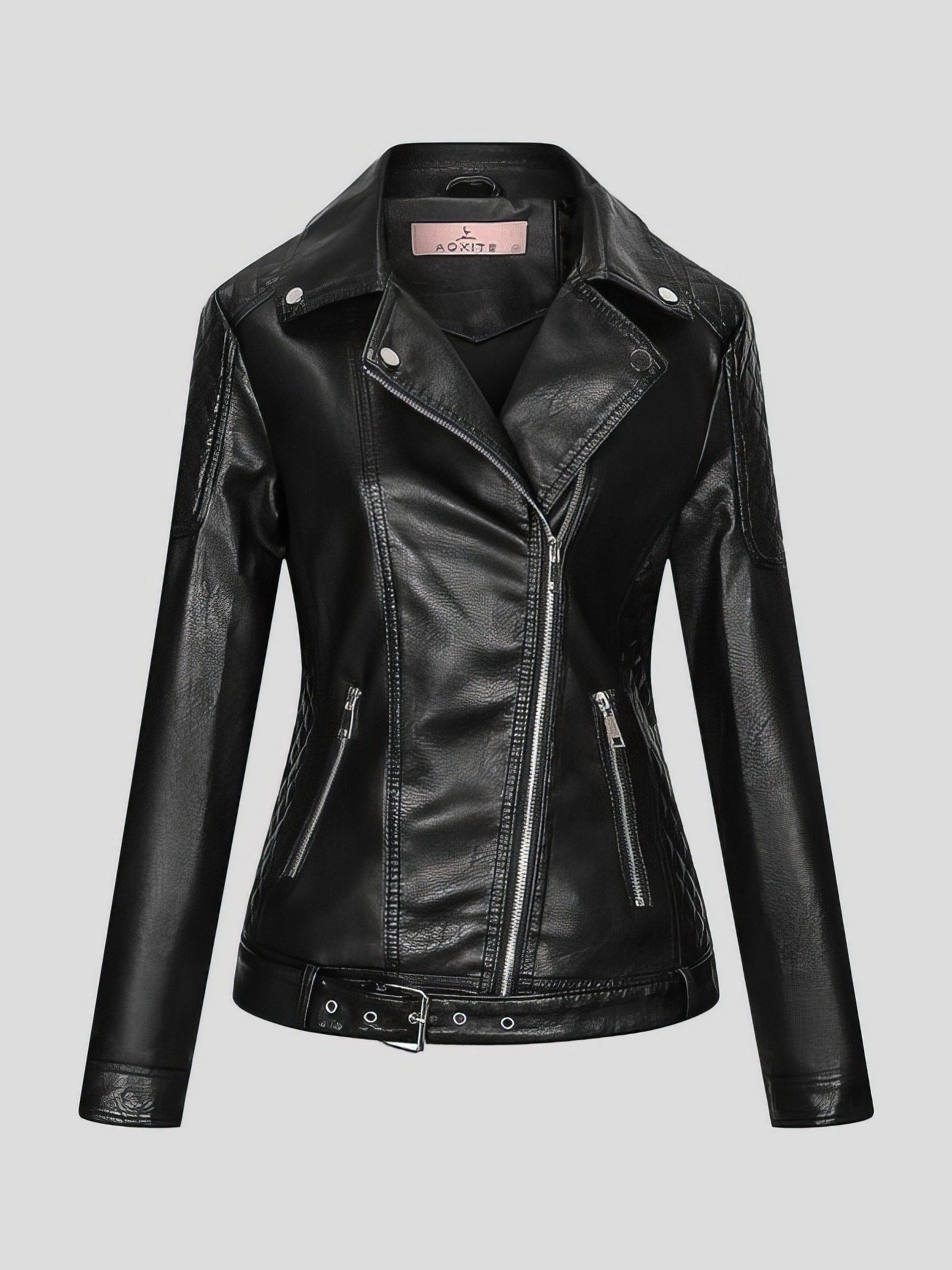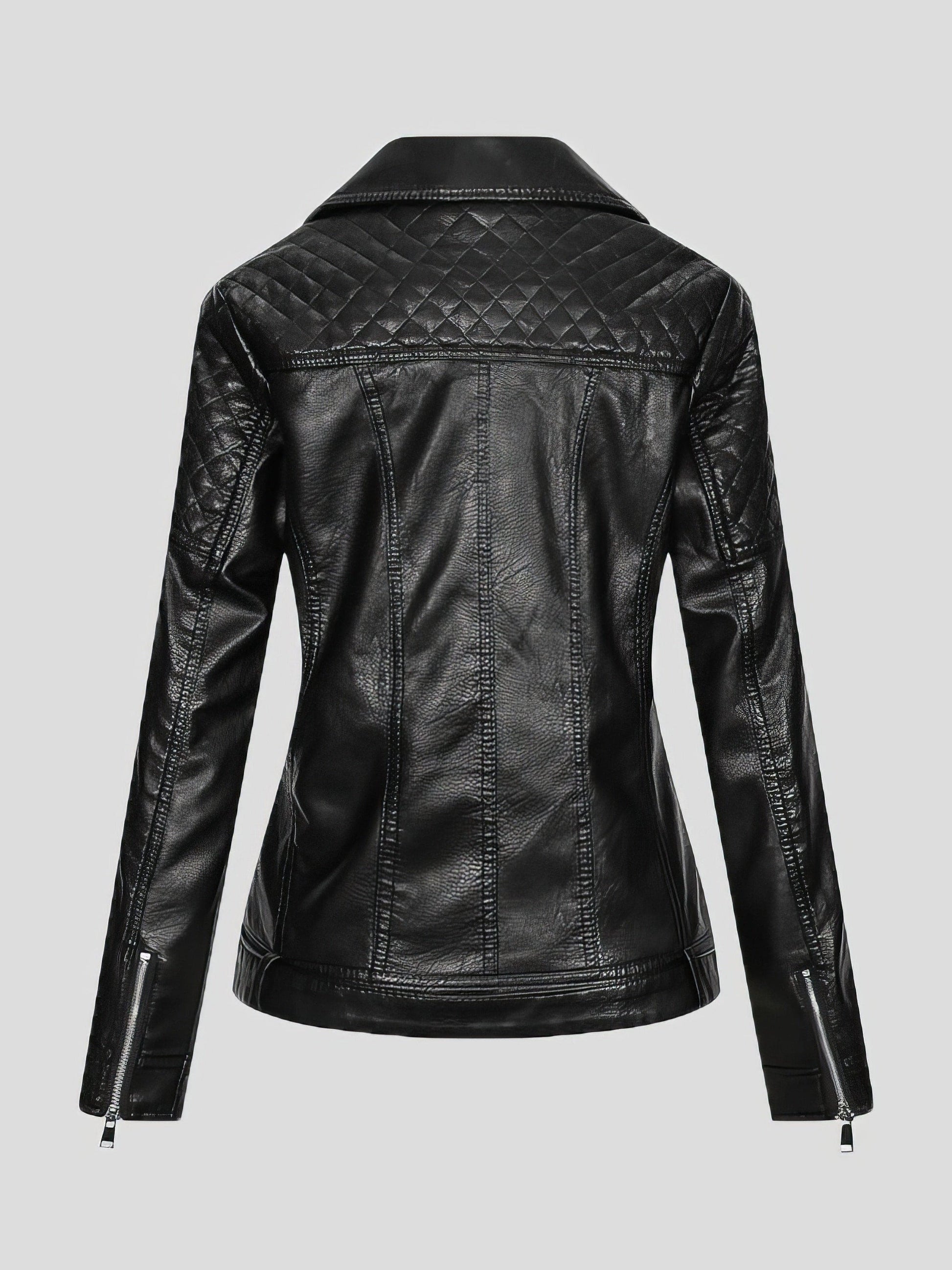 Upgrade your fashion statement with our Zipper Pu Long Sleeve Lapel Slim Fit Leather Jacket. This jacket is a perfect blend of style and comfort, catering to the needs of modern women.