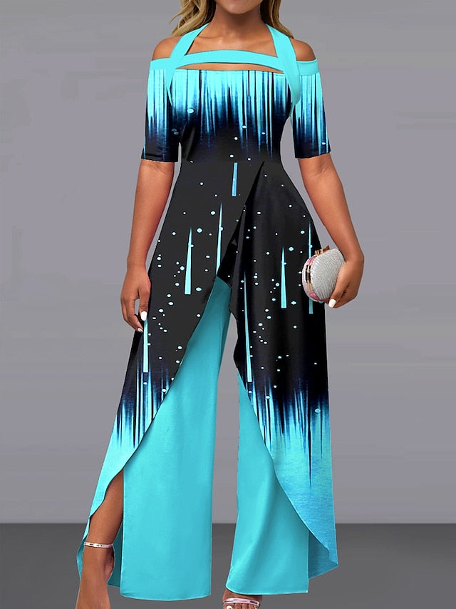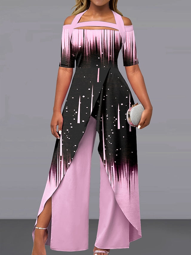 Women's Jumpsuit Print Gradient Off Shoulder Elegant Party Wide Leg Regular Fit Short Sleeve Black White Pink S M L Summer