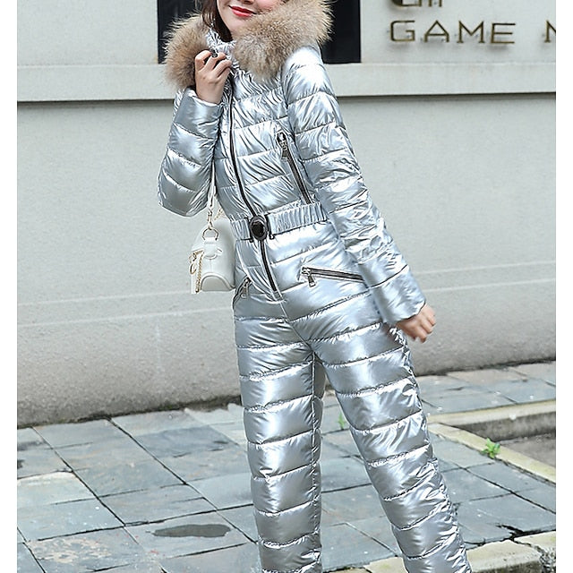Women's Jumpsuit Ski Suit Outdoor Winter Thermal Warm Windproof Detachable Hood Windbreaker Snow Suit for Skiing Camping / Hiking Snowboarding Ski