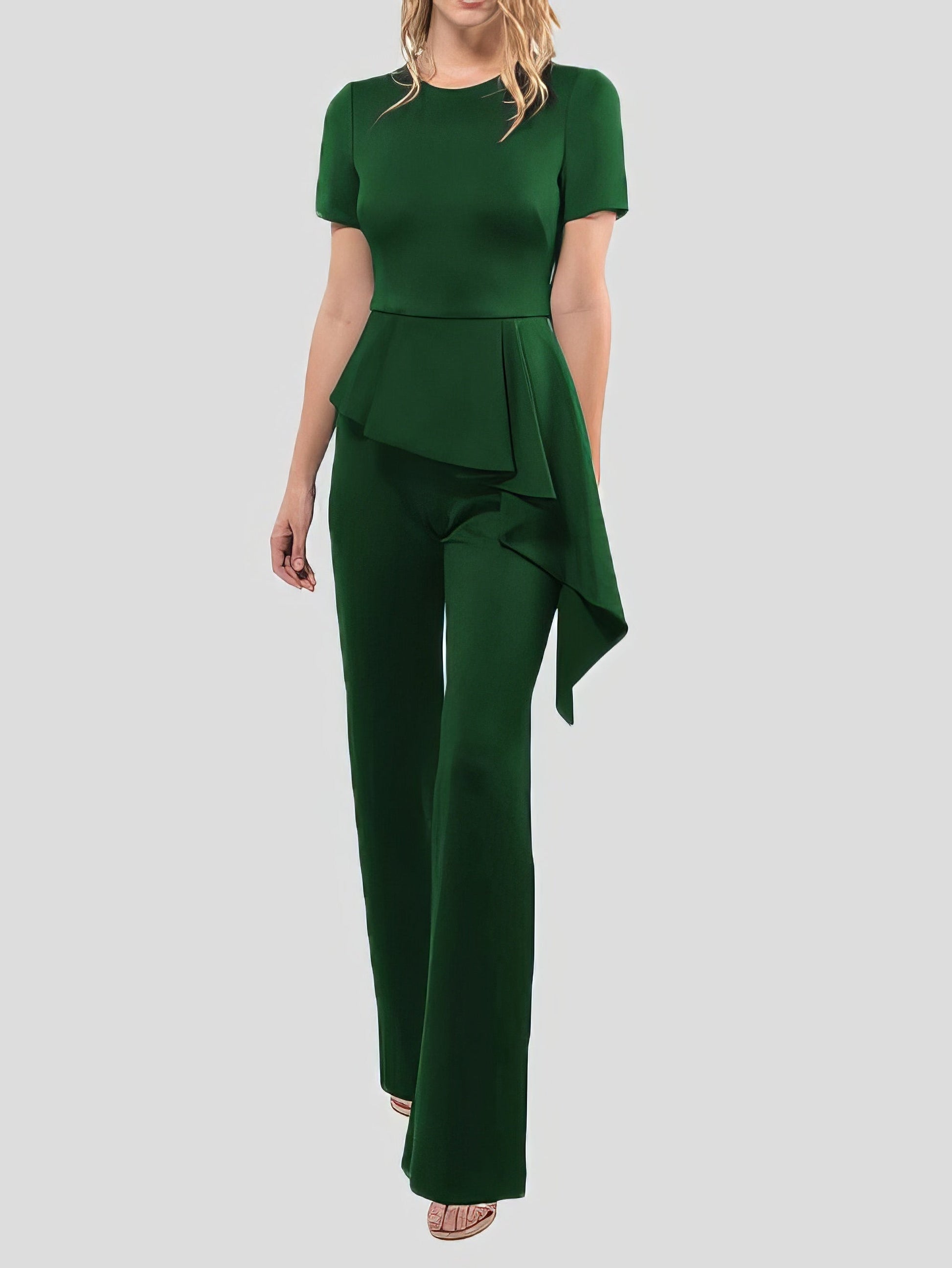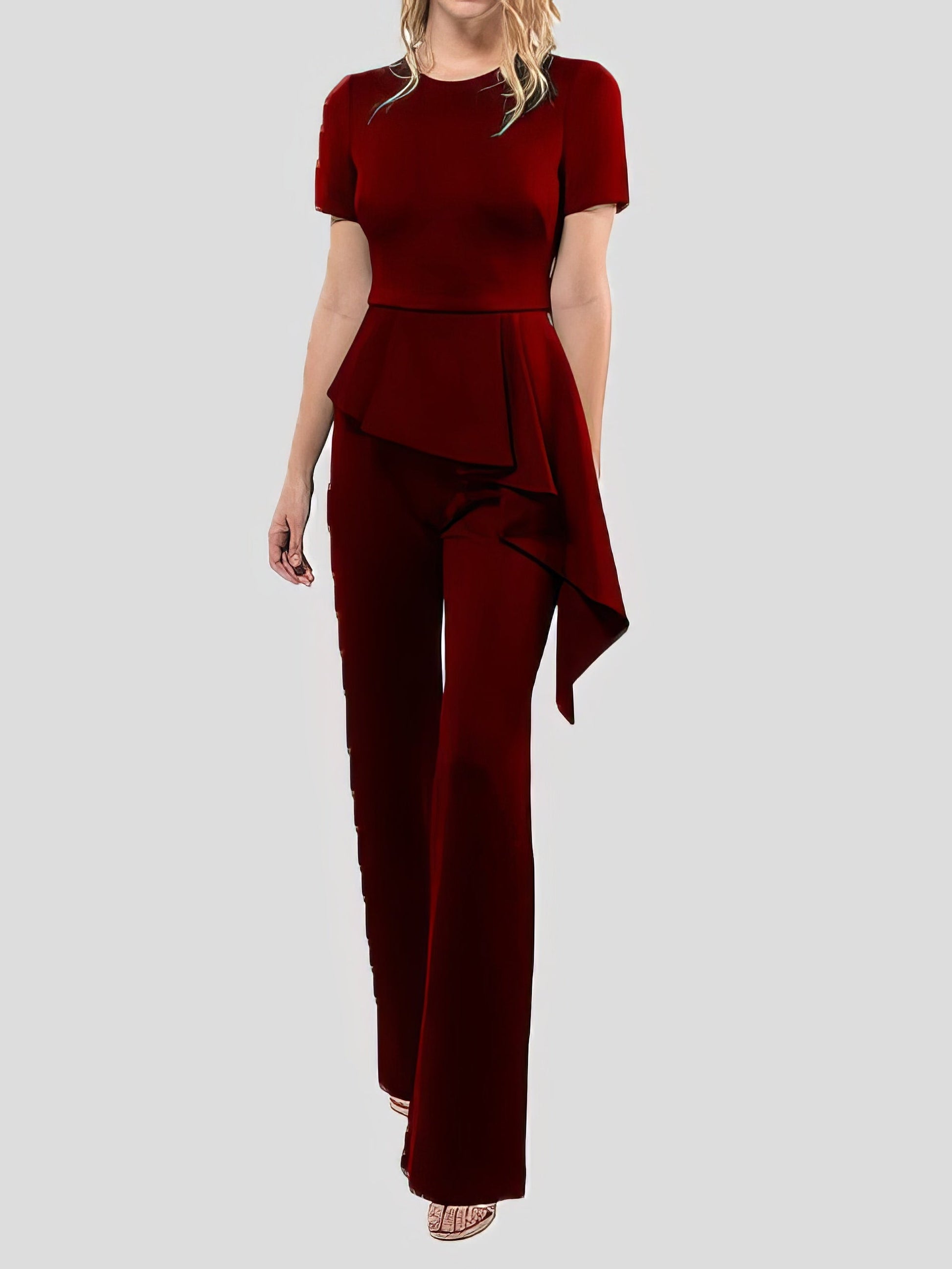 Whether you're aiming for a casual or fashion-forward style, this jumpsuit is versatile and on-trend, allowing you to express your individuality. Elevate your wardrobe and make a statement with our Solid Short Sleeve Ruffle Jumpsuit!