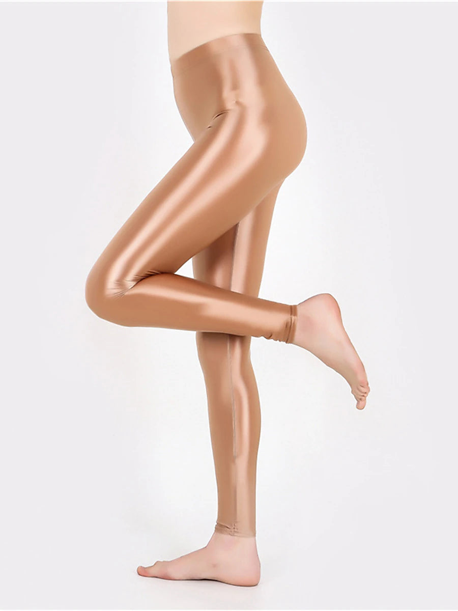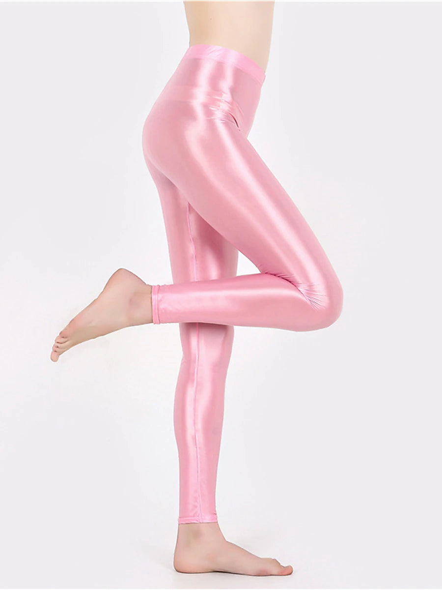 Women's Leggings Faux Leather Plain claret Robin's Egg Blue Active High Waist Ankle-Length Outdoor Yoga Fall Winter