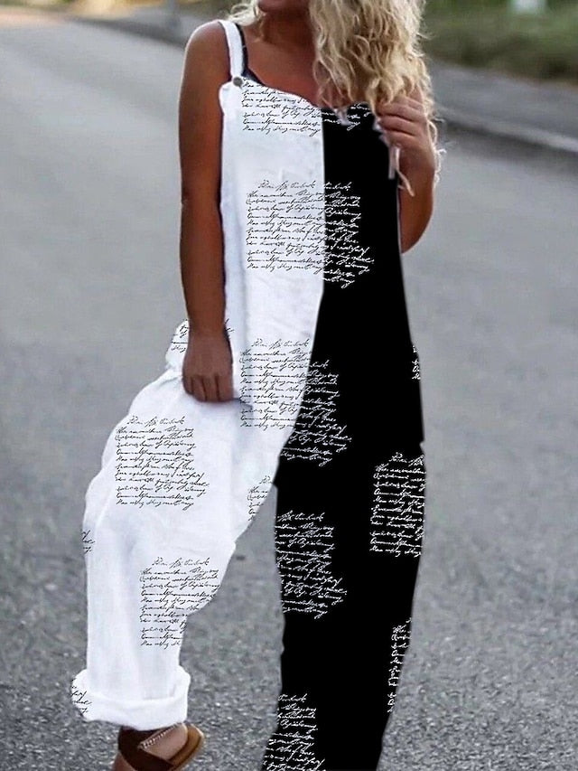 Women's Overall Button Pocket Letter U Neck Holiday Daily Vacation Straight Regular Fit Sleeveless Sleeveless White S M L Summer