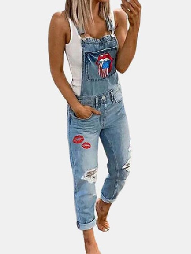 Women's Overall Pocket Ripped National Flag Active Daily Holiday Regular Fit Sleeveless Light color Grey S M L Fall