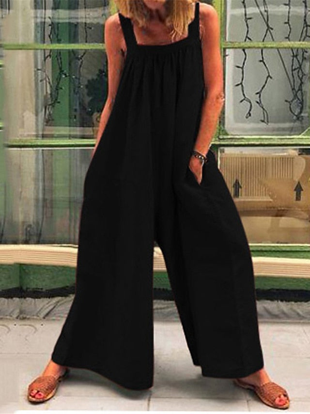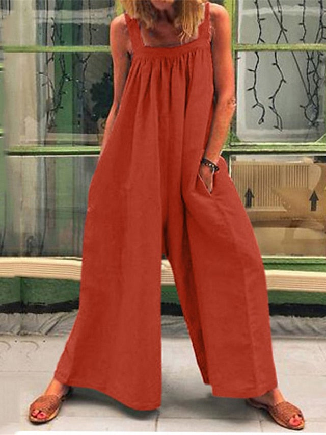Women's Overall Pocket Solid Color Square Neck Basic Daily Vacation Regular Fit Sleeveless Black Red Blue S M L Summer