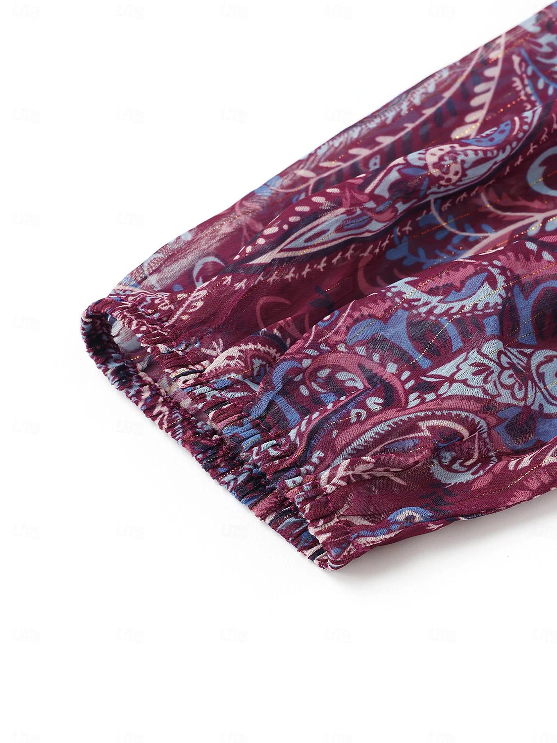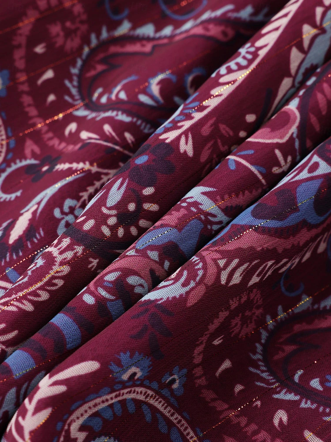 Women's Paisley Metallic Crinkle Chiffon Elastic Waist Midi Dress