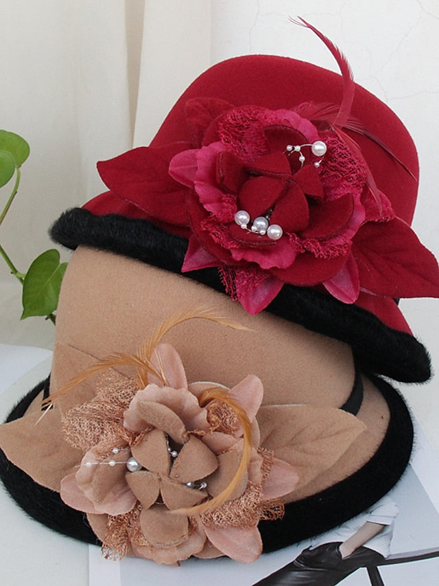 Women's Party Hat Party Wedding Special Occasion Flower Flower Camel White Hat Gray Fall Winter Spring Holiday