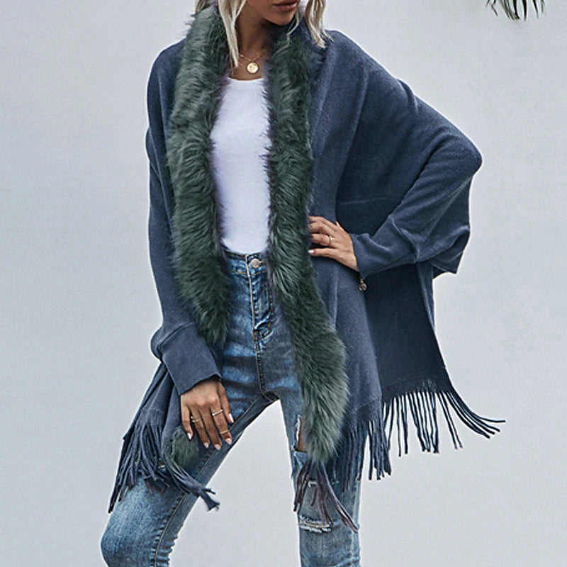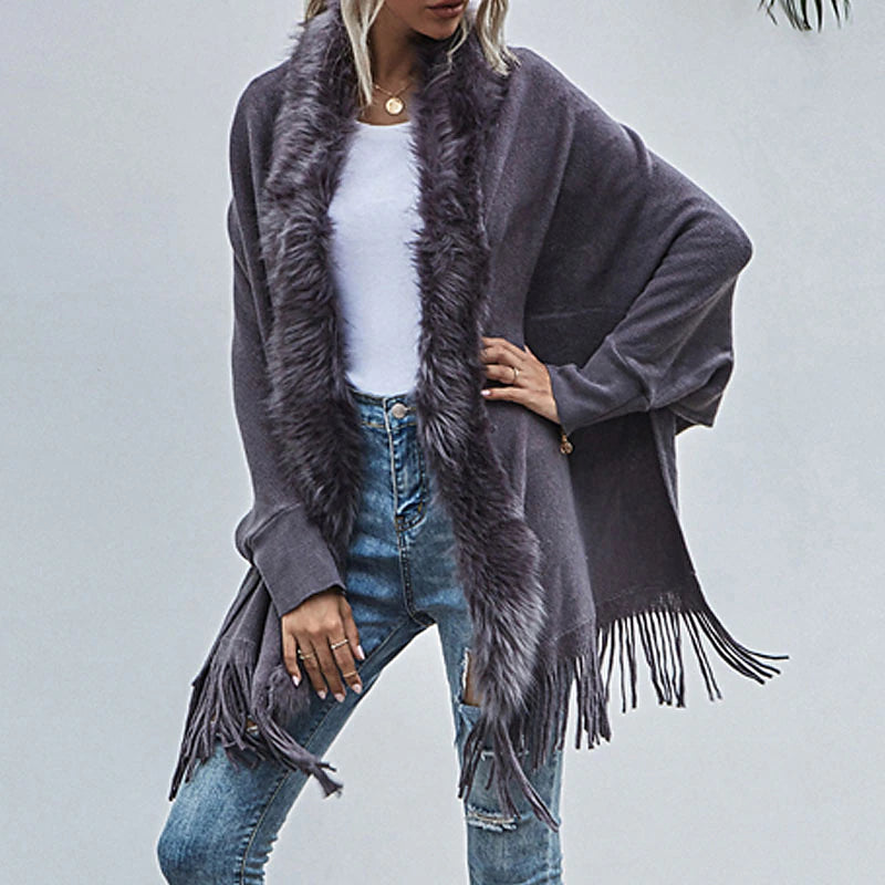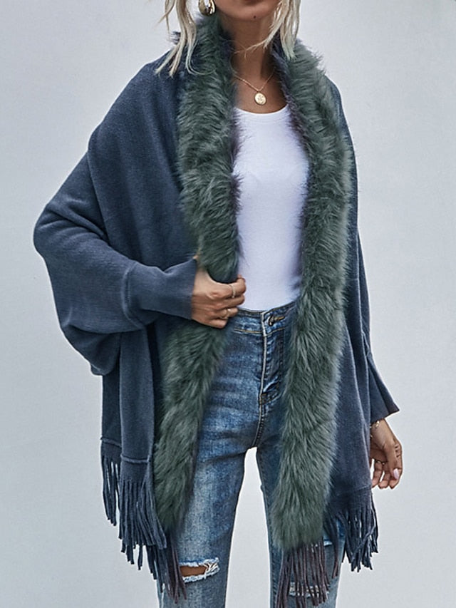 Women's Poncho Sweater Open Front Ribbed Knit Acrylic Tassel Knitted Fall Winter Tunic Outdoor Daily Going out Stylish Casual Soft Long Sleeve Pure Color Black Pink Wine S M L