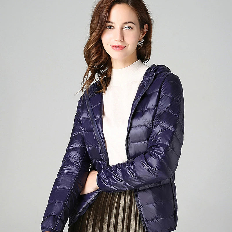 Women's Puffer Jacket with Hoodie Jacket Hiking Down Jacket Winter Outdoor Thermal Warm Packable Waterproof Windproof Jacket Top Full Length Visible Zipper Fishing Camping / Hiking / Caving