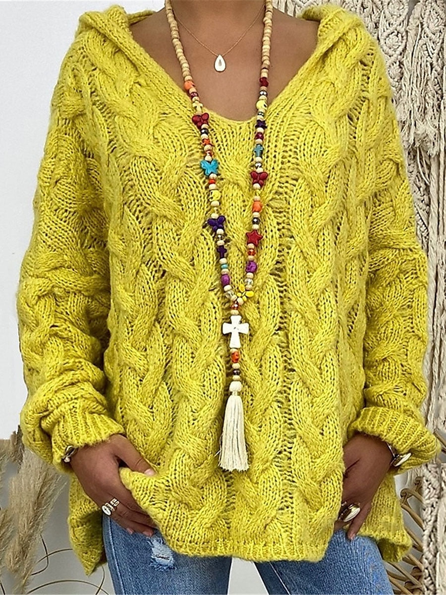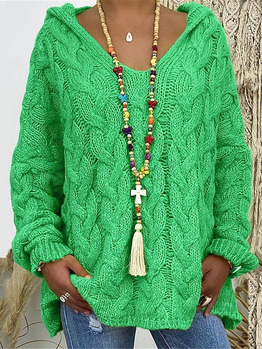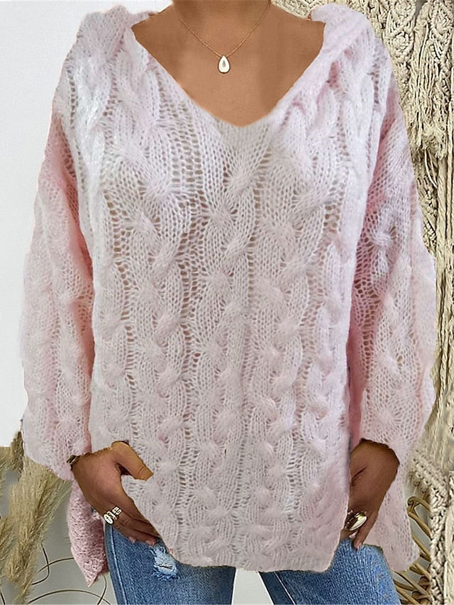 Women's Pullover Sweater Jumper Hooded Cable Knit Polyester Oversized Fall Winter Regular Daily Going out Weekend Stylish Casual Soft Long Sleeve Solid Color Black Pink Fuchsia S M L