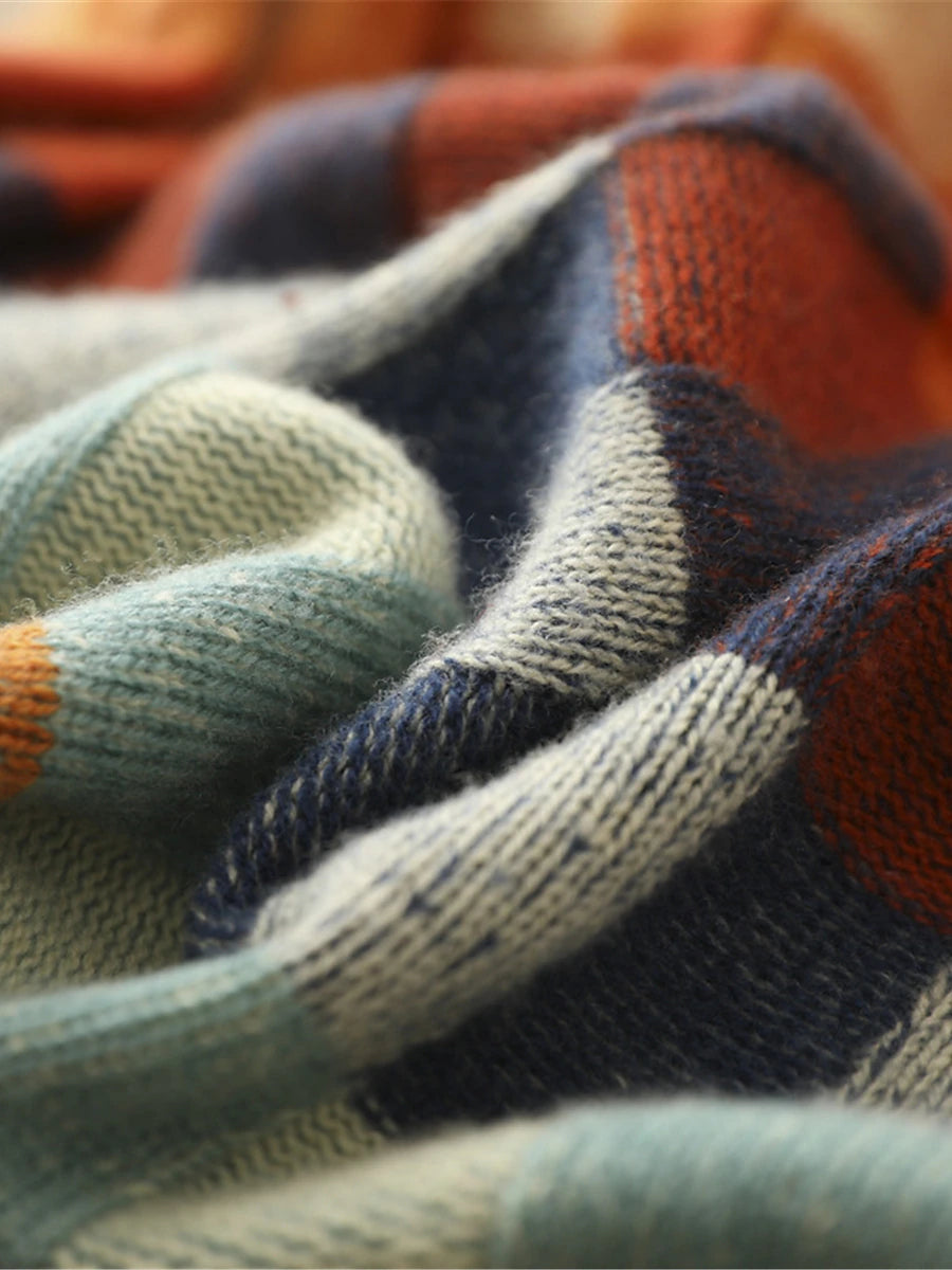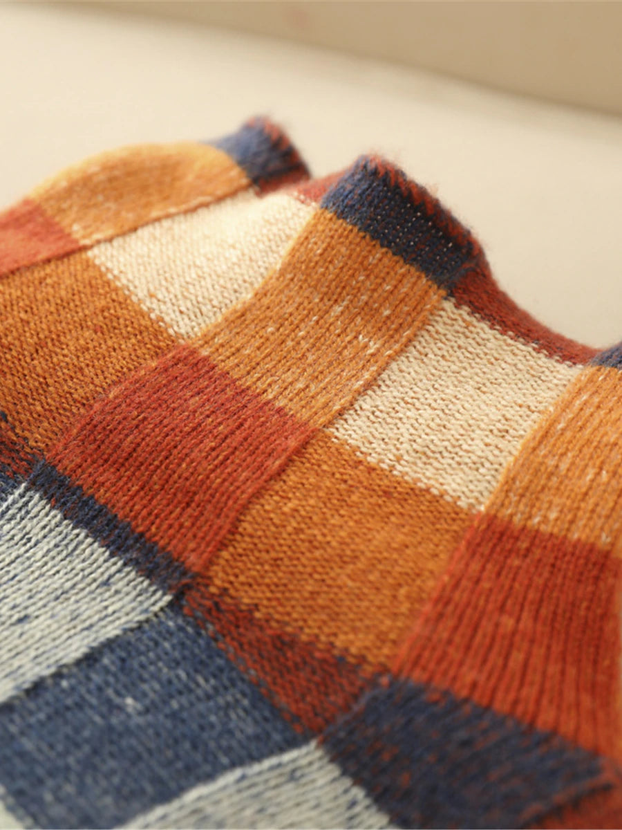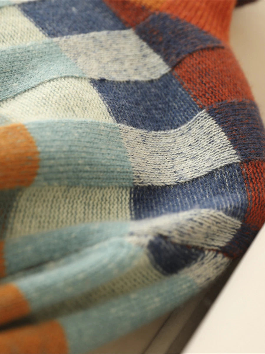 Women's Pullover Sweater Jumper Stand Collar Turtleneck Ribbed Knit Acrylic Patchwork Summer Fall Daily Going out Weekend Stylish Casual Soft Long Sleeve Plaid Color Block Rainbow S M L