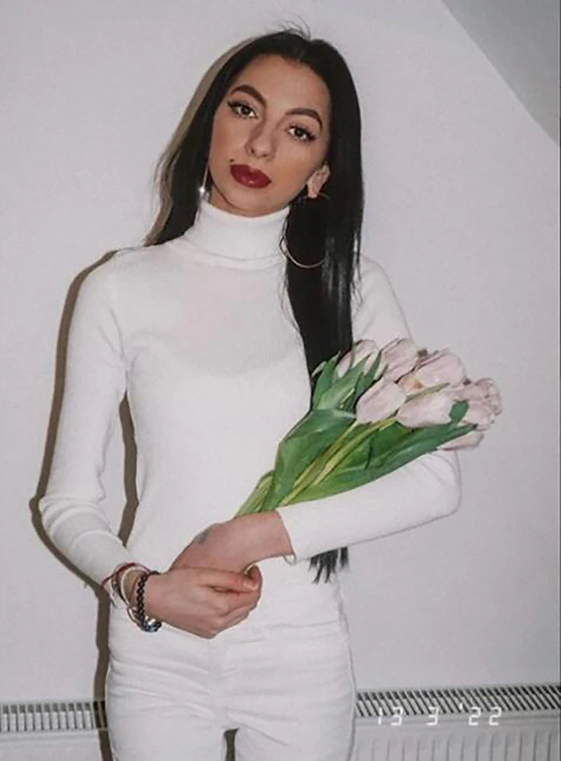 Women's Pullover Sweater Jumper Turtleneck Ribbed Knit Spandex Knitted Thin Fall Winter Daily Basic Casual Long Sleeve Solid Color caramel Black White One-Size 2XL / 3XL S / M
