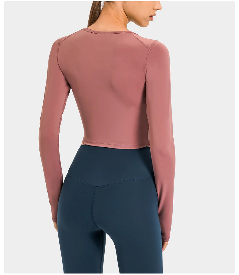 Women's Running T-Shirt Crop Top Solid Color Yoga Fitness Thumbhole Crop Top Red Crew Neck High Elasticity Spring & Fall