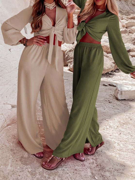 - Feature: Knotted, Long Sleeve, Wide Leg, Two-Piece
