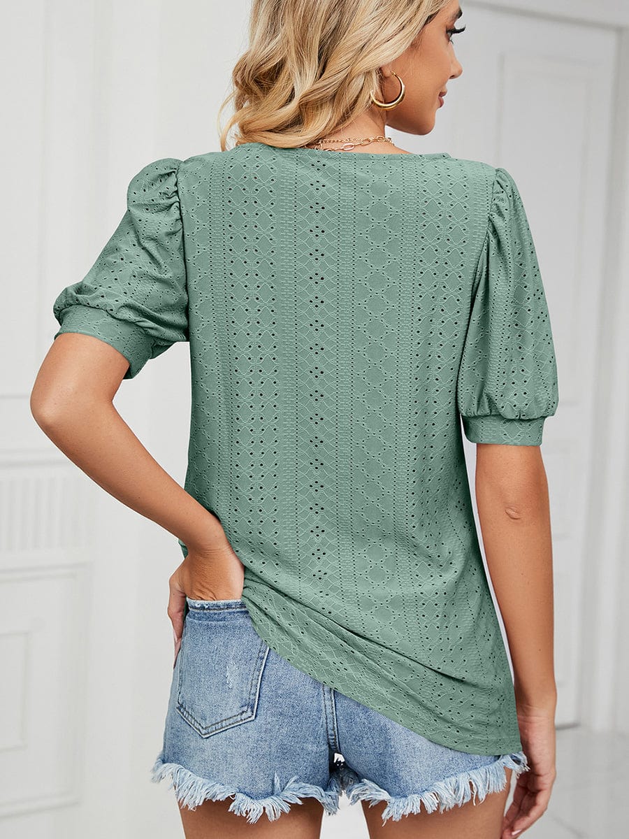 Casual Round Neck Solid Color Hollow Loose T-Shirt