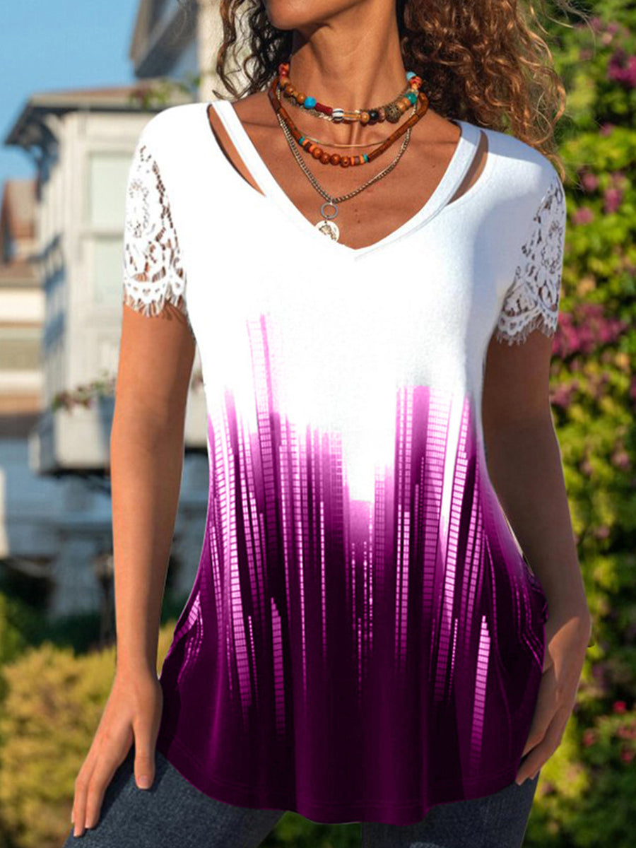 Lace Gradient Print Loose Short Sleeve T-Shirt