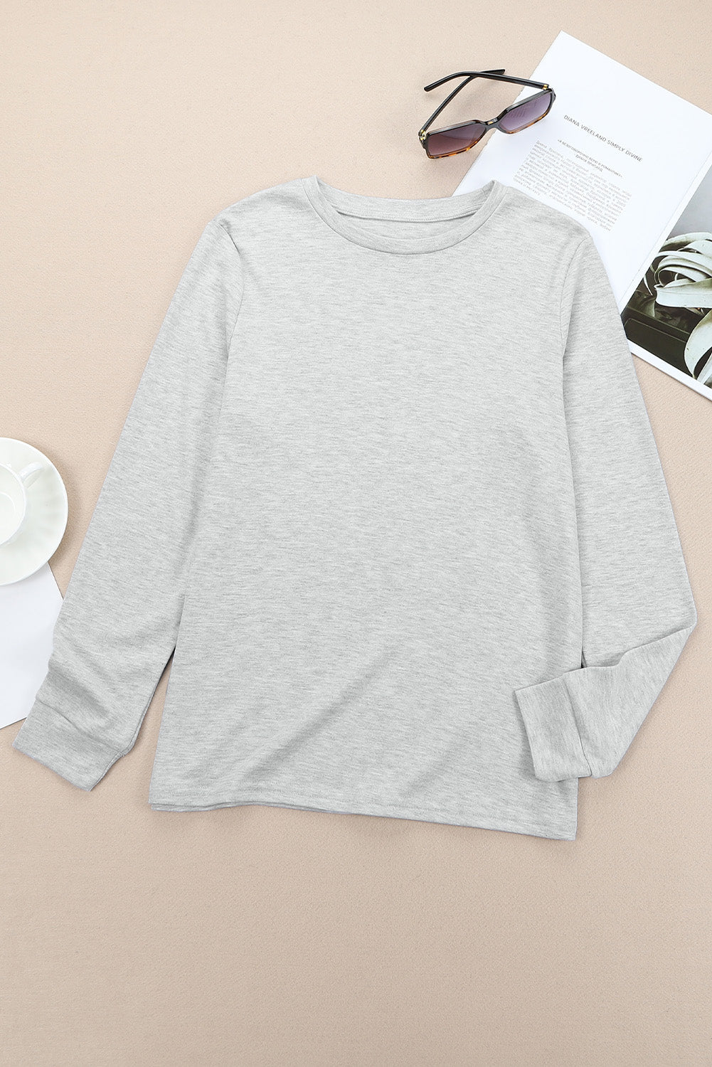 Solid Round Neck Long Sleeve T-Shirt