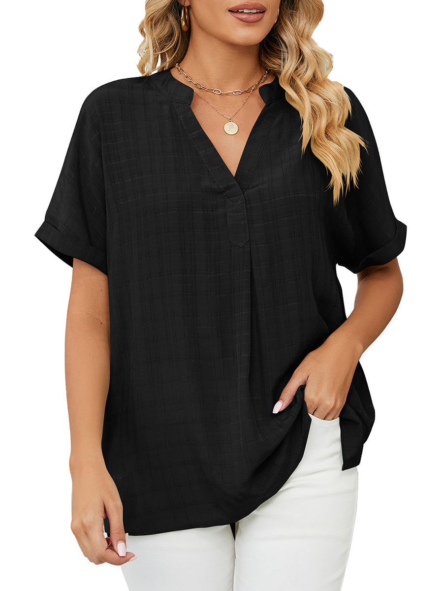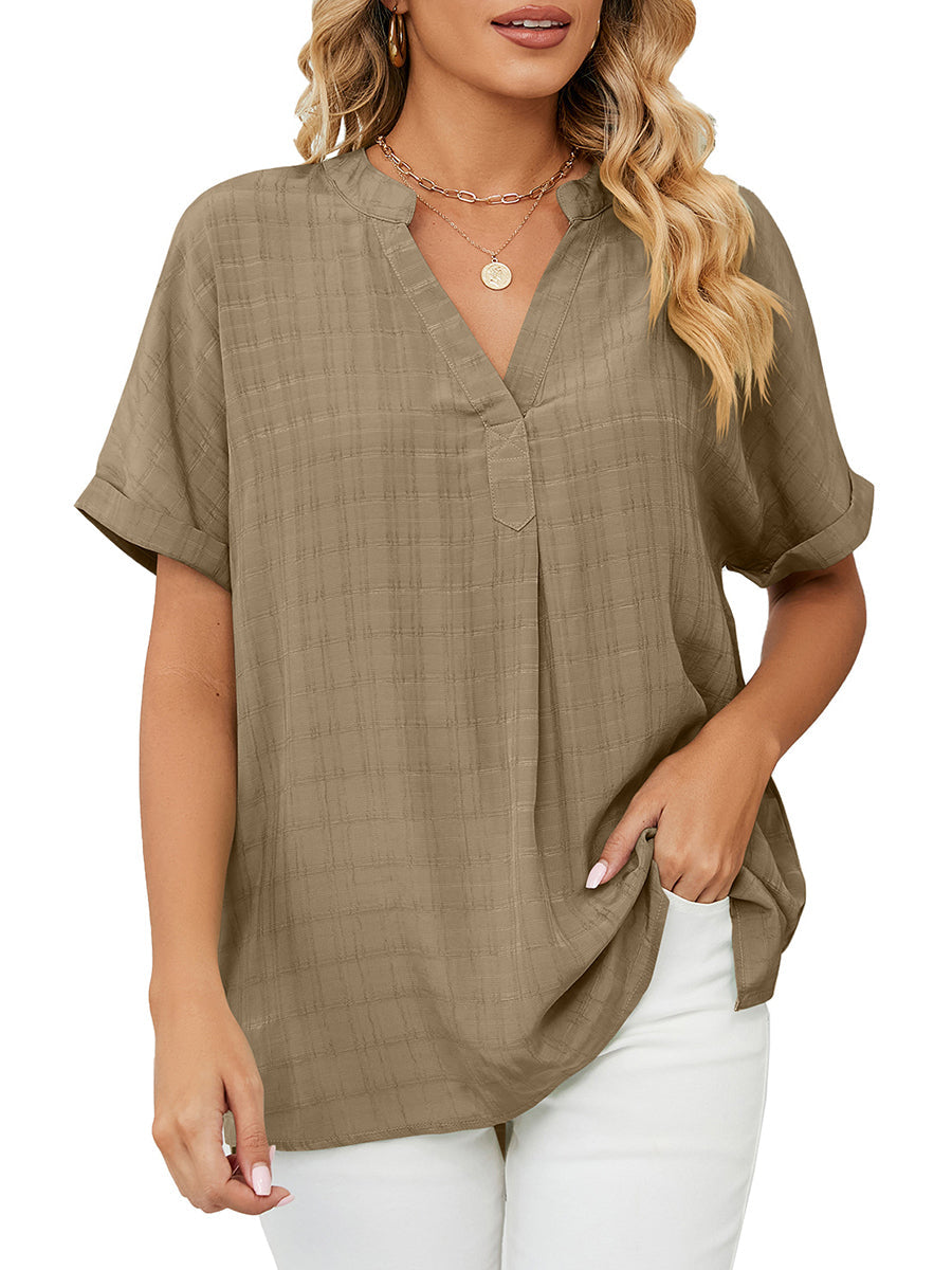 Whether you're running errands or meeting friends for coffee, this t-shirt will keep you feeling stylish and at ease. Embrace effortless style and comfort with the MsDressly® Solid V-Neck Loose Short Sleeve T-Shirt, a must-have addition to your casual wardrobe.