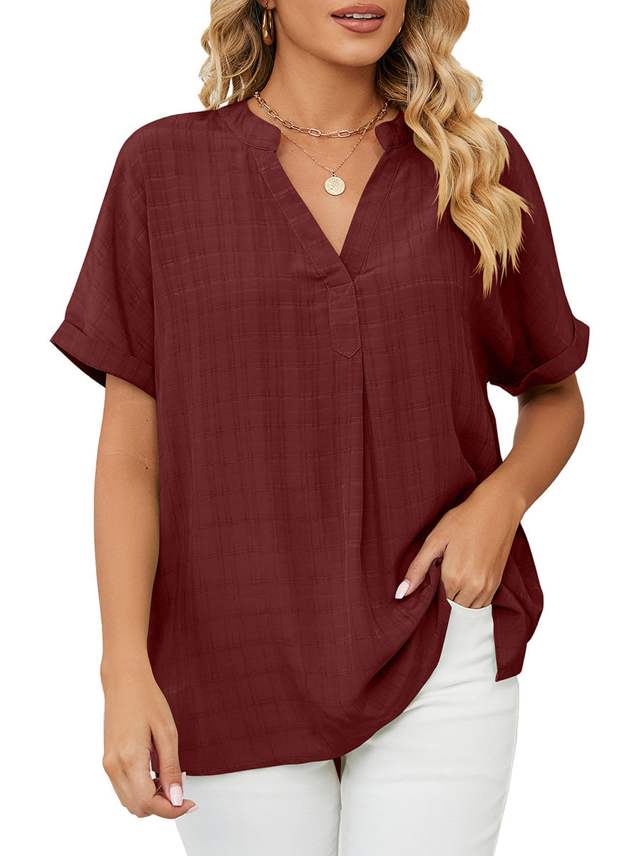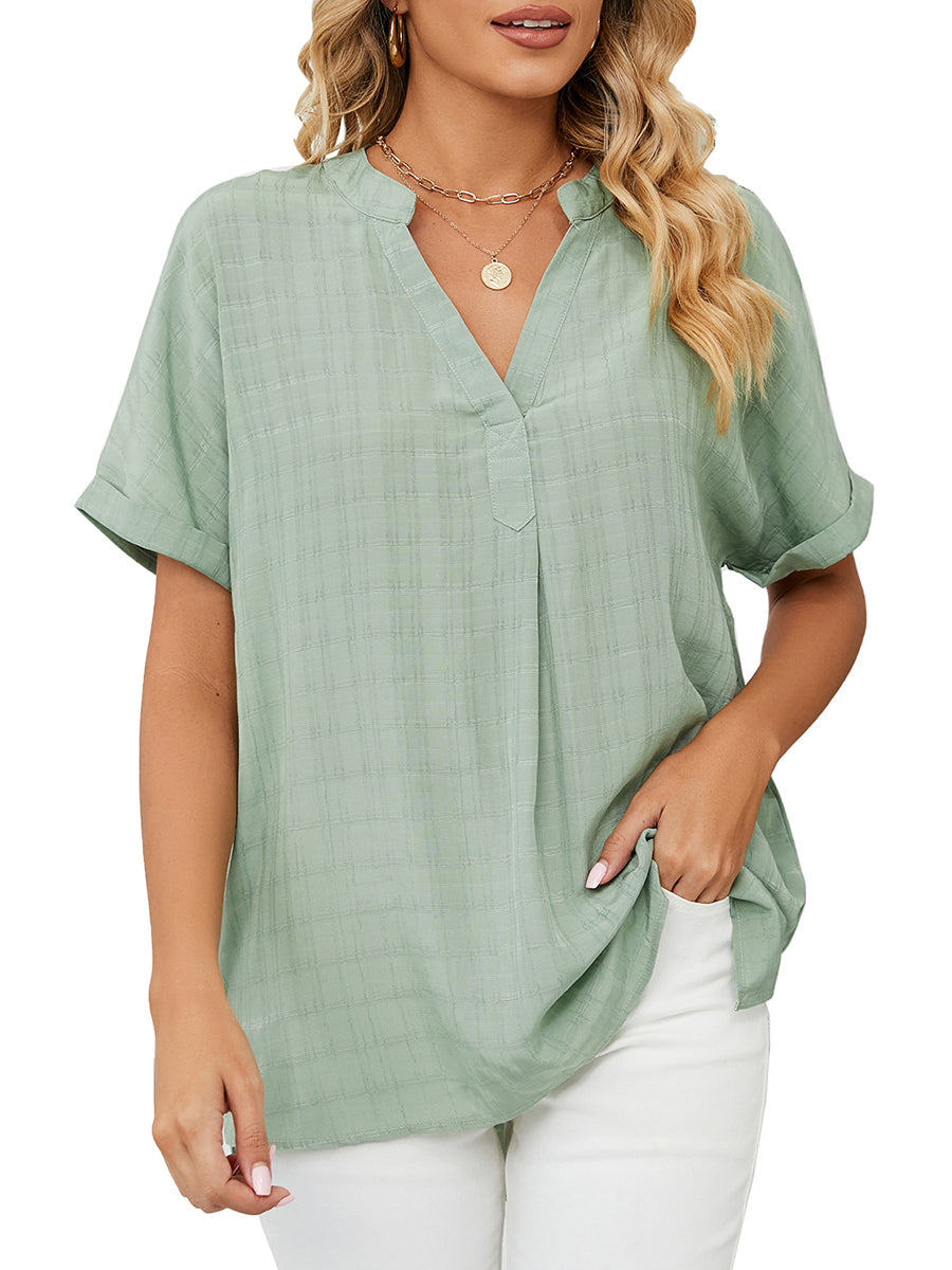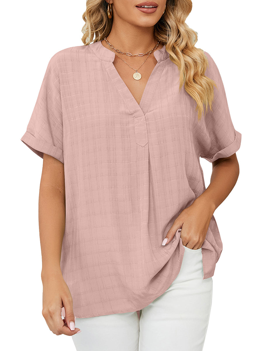 Solid V-Neck Loose Short Sleeve T-Shirt