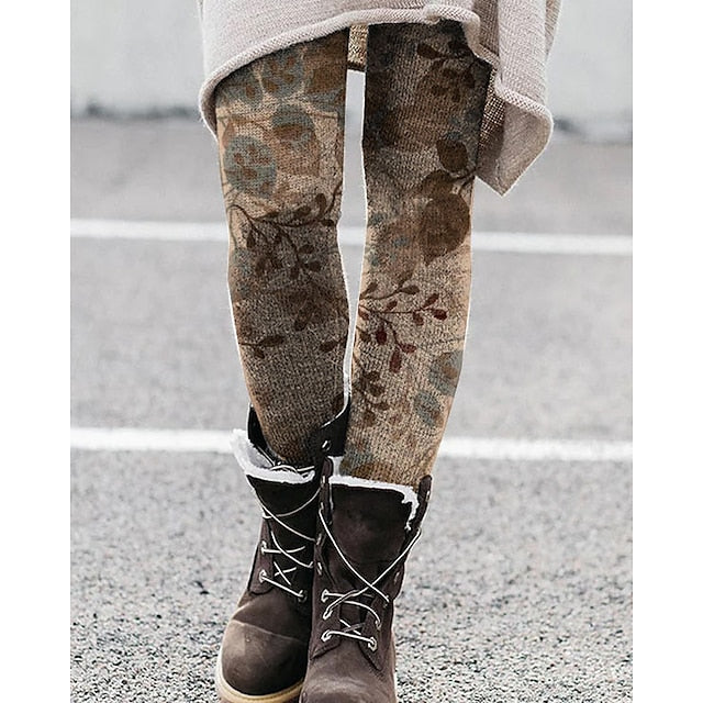 Women's Tights Normal Polyester Paisley Butterfly Red Navy Blue Fashion Mid Waist Ankle-Length Daily Summer Spring & Fall