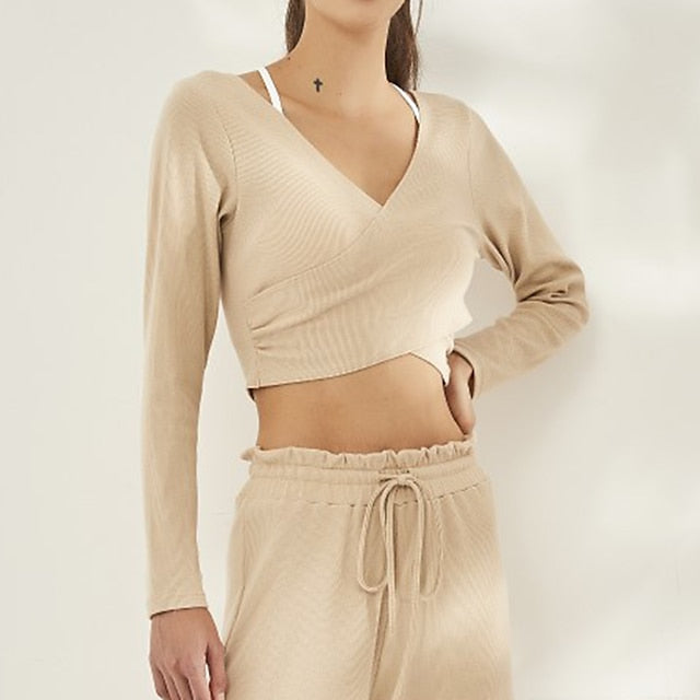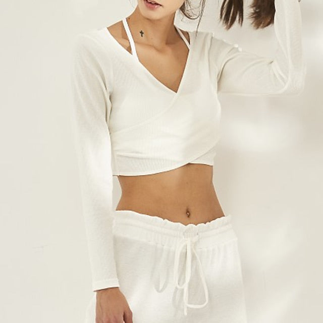 Women's Yoga Top Quick Dry Solid Color Yoga Fitness Crop Top Black White Pink V Neck High Elasticity Spring & Fall