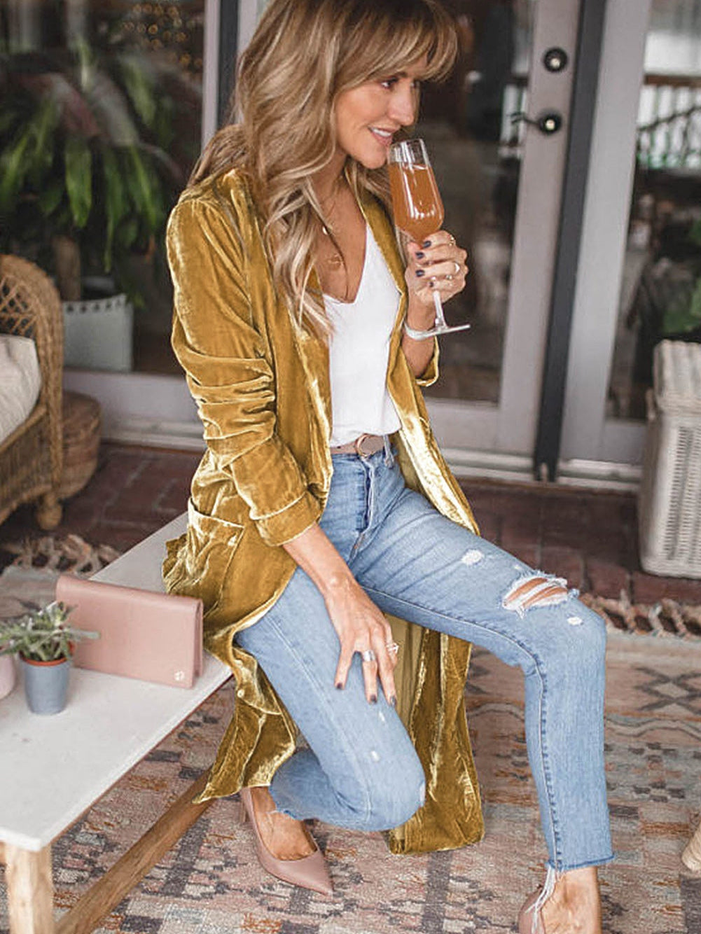 Golden Mustard Plush Open Front Pocketed Maxi Cardigan